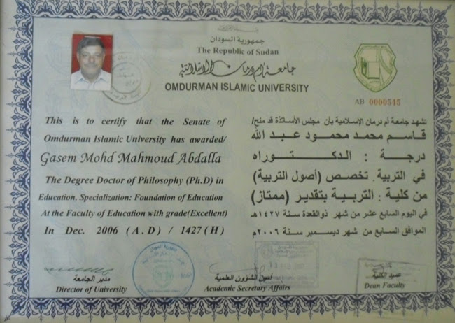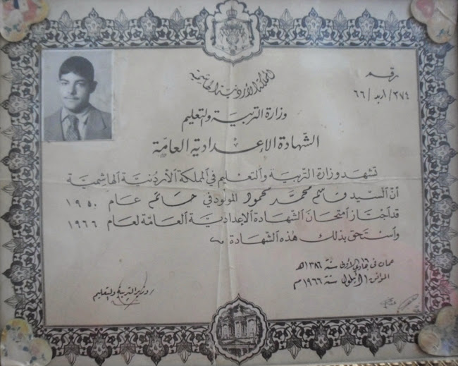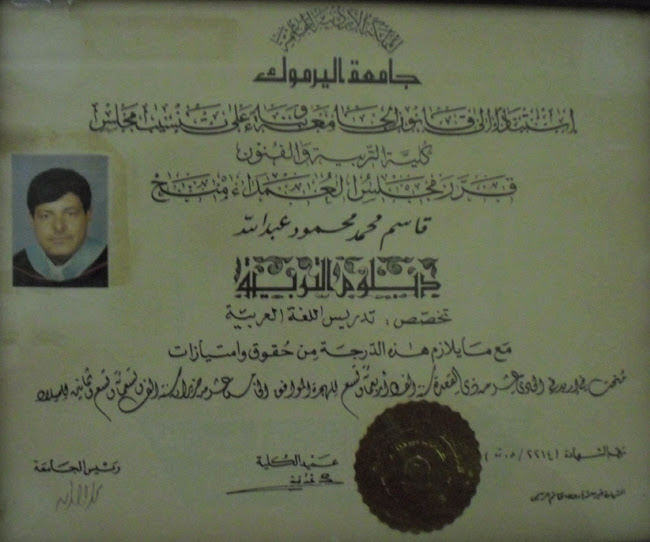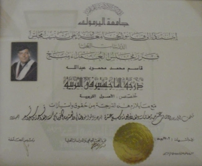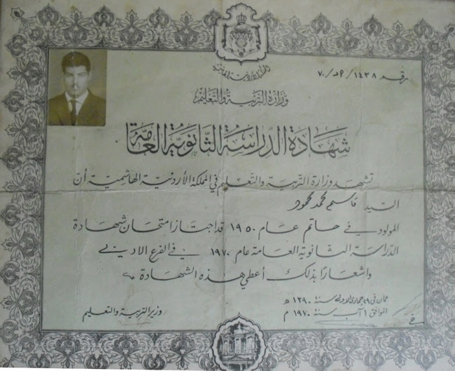 بعض الشهادات العلمية التي حصل عليها المرحوم الدكتور قاسم عودات